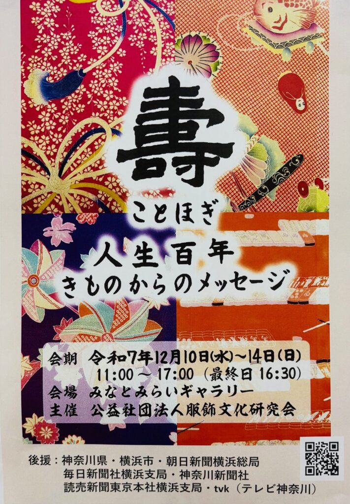 調査研究室もこの記念の年に相応しく、展示のタイトルを「壽(ことほぎ) 人生百年きものからのメッセージ」として展示公開を開催いたします。