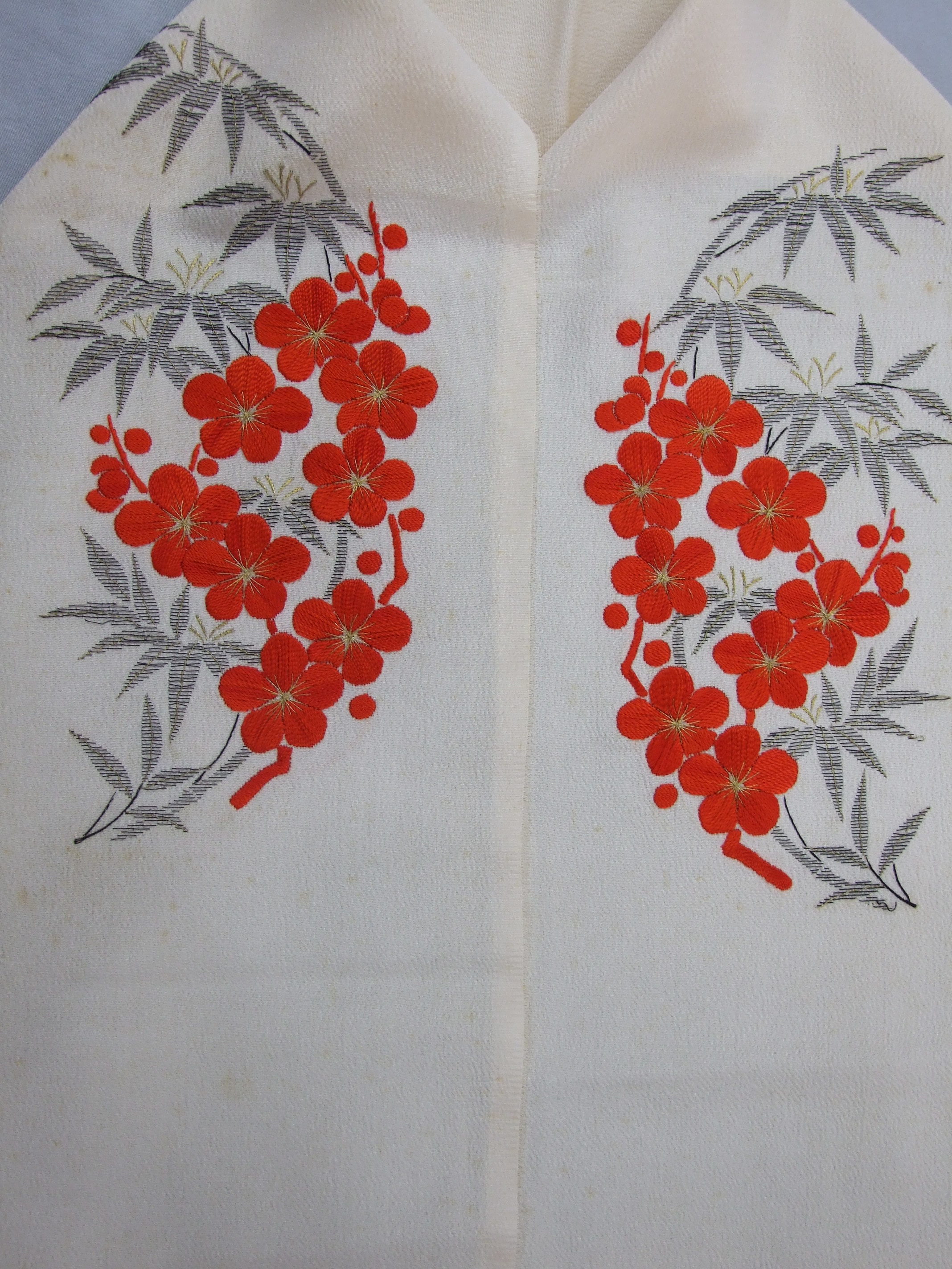 竹と梅は、古来日本人に最も親しまれてきた文様として取り入れられてきました。竹はしなやかで強く、折れることがなく、梅は愛らしい花の姿と寒中に漂う芳香から新春一番に着る柄として親しまれています。